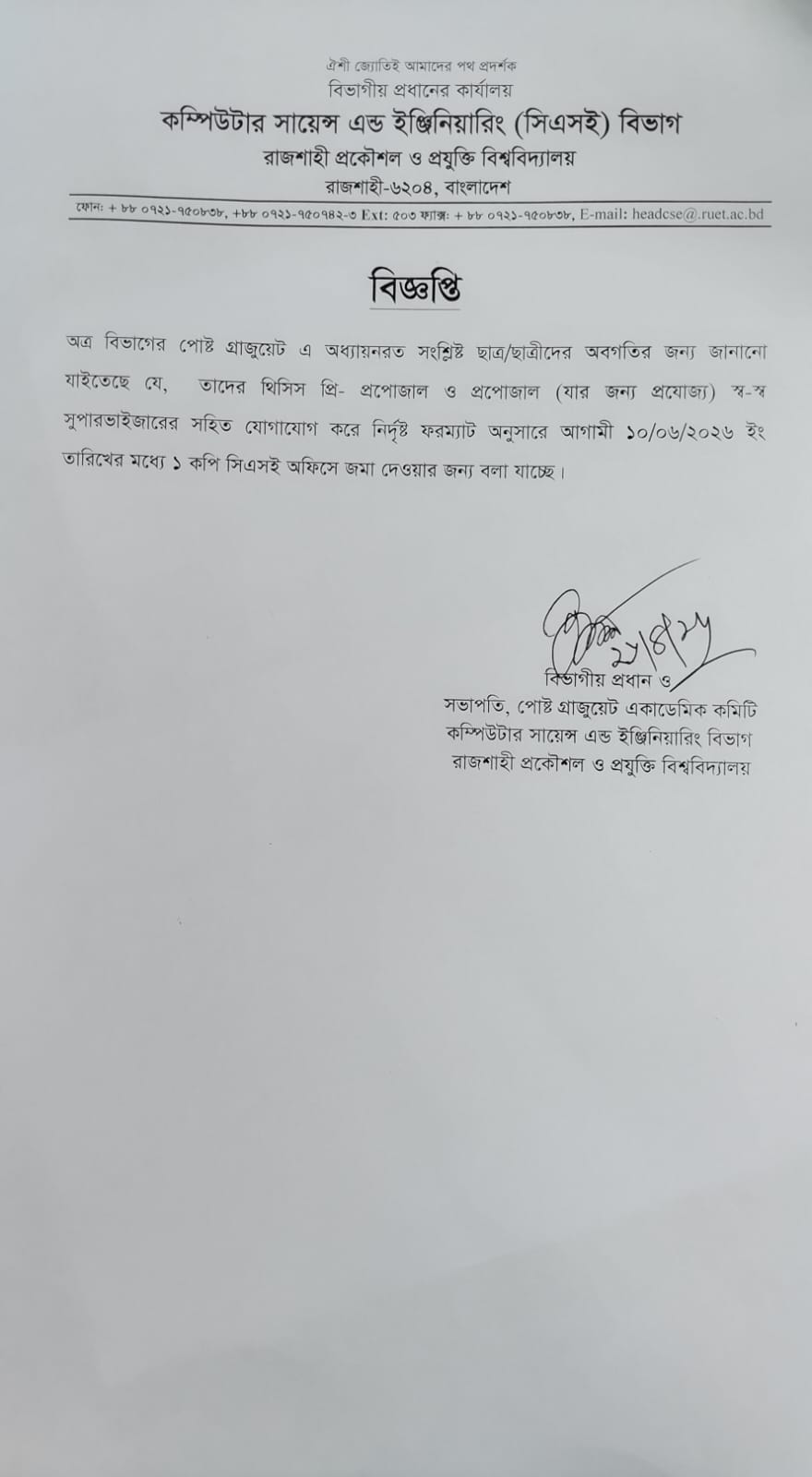 PG Thesis Pre-proposal & Proposal Submission Extended Notice